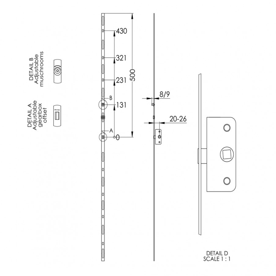 Length: 600mm. Backset size: 20-25mm. Mushroom Cams: 9mm. The universal espag rod is perfect for repair work, letting you finish jobs in just one visit.